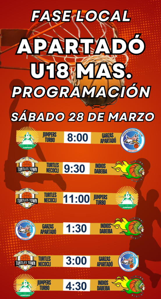 La organización Basketcolombia, a través de su plataforma Liga Basketcolombia “Sueños International”, expresa su más sincero agradecimiento a los equipos Turtles de Necoclí, Jumpers de Turbo, Garzas de Apartadó e Indios de Dabeiba por su valiosa participación en la Fase Local U18 Masculina realizada en el municipio de Apartadó.