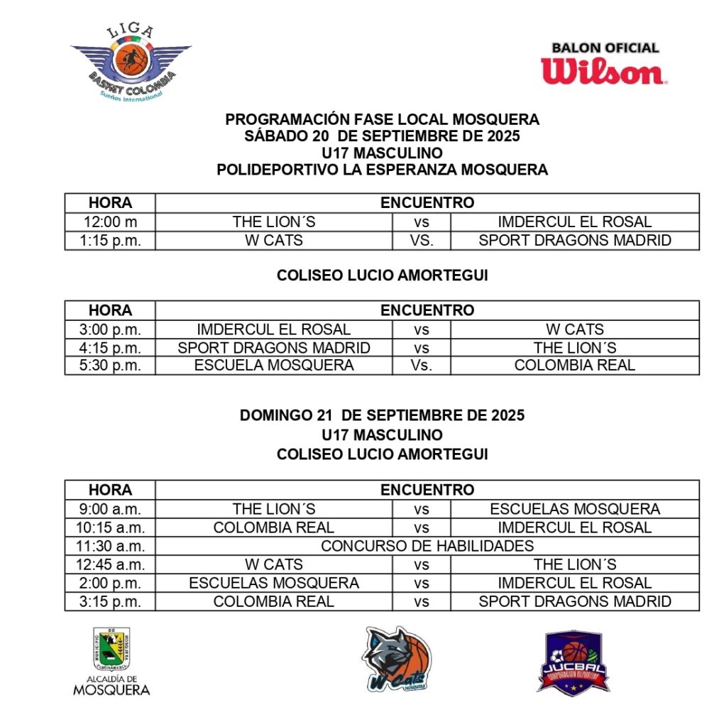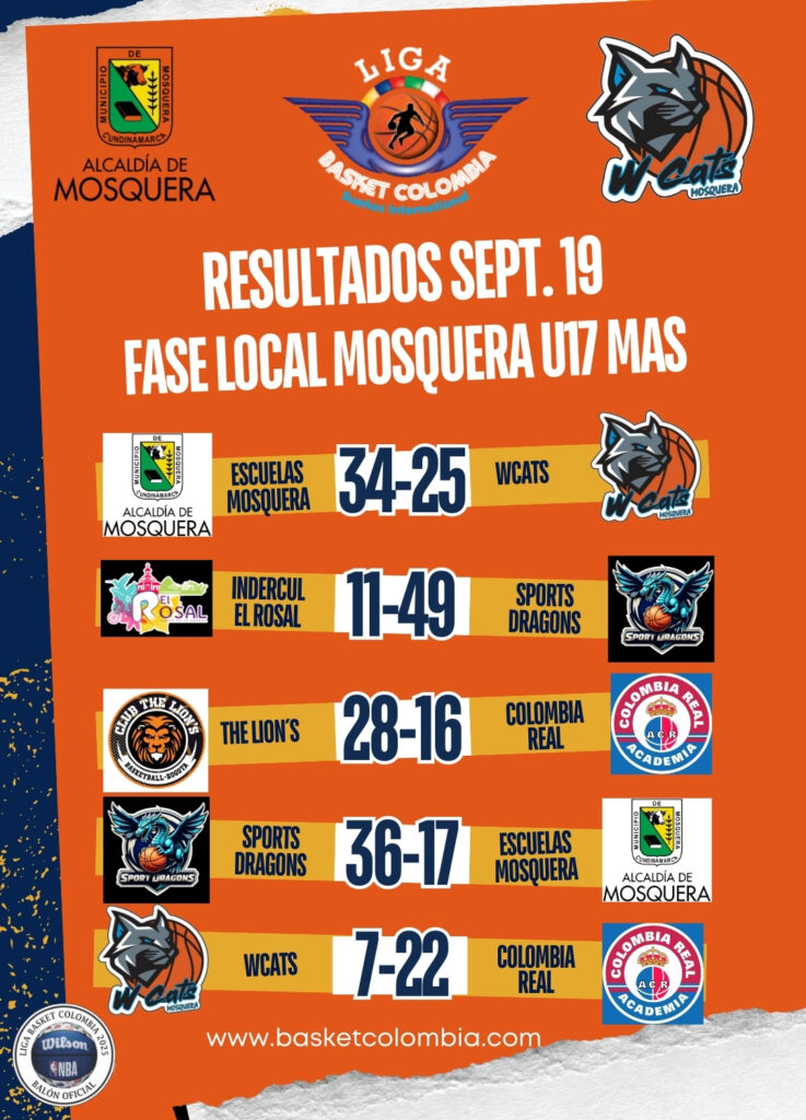 Imdercul El Rosal, Sports Dragons de Madrid, The Lión´s Bogotá, Colombia Real y los locales W Cats y Escuelas Alcaldía de Mosquera.